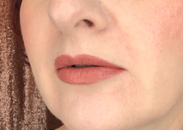 I think this may be my favorite color of the three, but it’s my least favorite formula in this set. Yes, it’s an ultra matte so it does feel a little dry after it sets. It also ends up about one to two shades darker then it looks in the tube when it dries down. (I figured it would be a good idea to show you what Top 8 looks like in the tube compared to what it looks like on the lips after it sets.) However, I love this terracotta rose color. It’s also really pretty and more comfortable with Tight Fit layered over top.