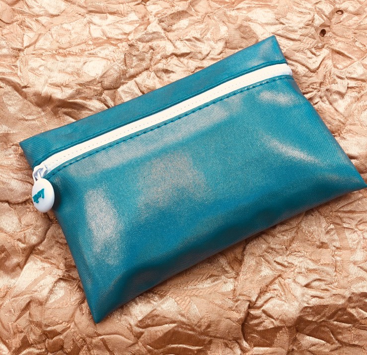The July ipsy Glam Bag is a beautiful iridescent aqua blue with a white rubberized zipper and pull. This bag is super cute. I’m gonna hang onto this one.